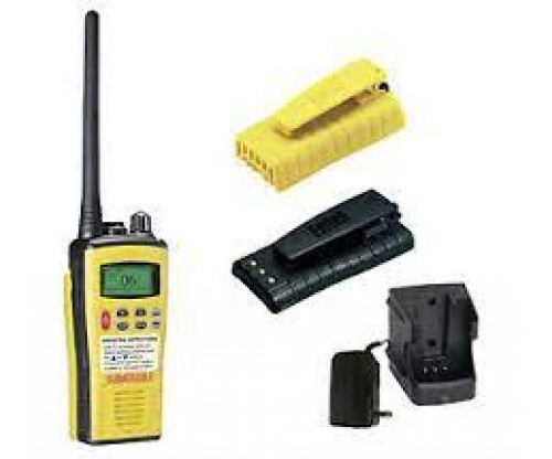 Kisaran Frekuensi (MHz) 156-163.275 Saluran 19 Saluran Laut INT, USA & CAN Spacing Saluran 25 kHz Metode Komunikasi Simpleks / Semi dupleks Impedansi Antena 50 ohm Antena Whip / Stubby Tipe Baterai Primer - Lithium Sekunder - 2000 mAh Li-Ion Voltase Suplai Daya 7.4V DC Kuras Arus (nominal) 40mA Siklus Kerja Primer (10/10/80) Siklus Kerja Sekunder (5/5/90) Primer: <8 jam Sekunder: 14.5 jam Mikrofon Mikrofon kondenser internal Suhu Operasi -20 hingga +55 Derajat Celsius Konstruksi MIL-STD 810C/D/E/F Rating IP IP68 (2m kedalaman selama 4 jam) Spesifikasi Ukuran Panjang (mm) 59.5mm (W) x 130mm (H) x 37mm (D) Berat (g) 277g dengan baterai dan aerial